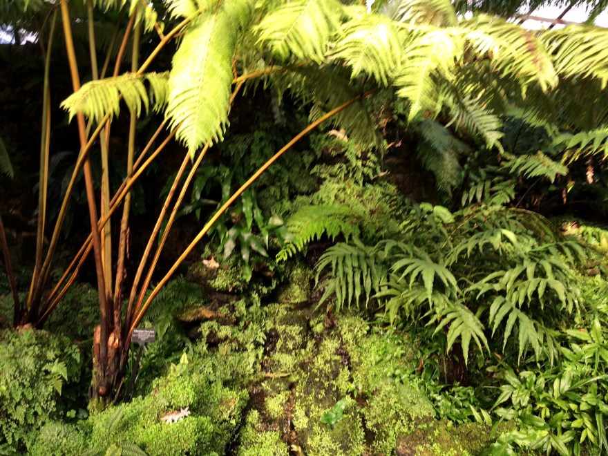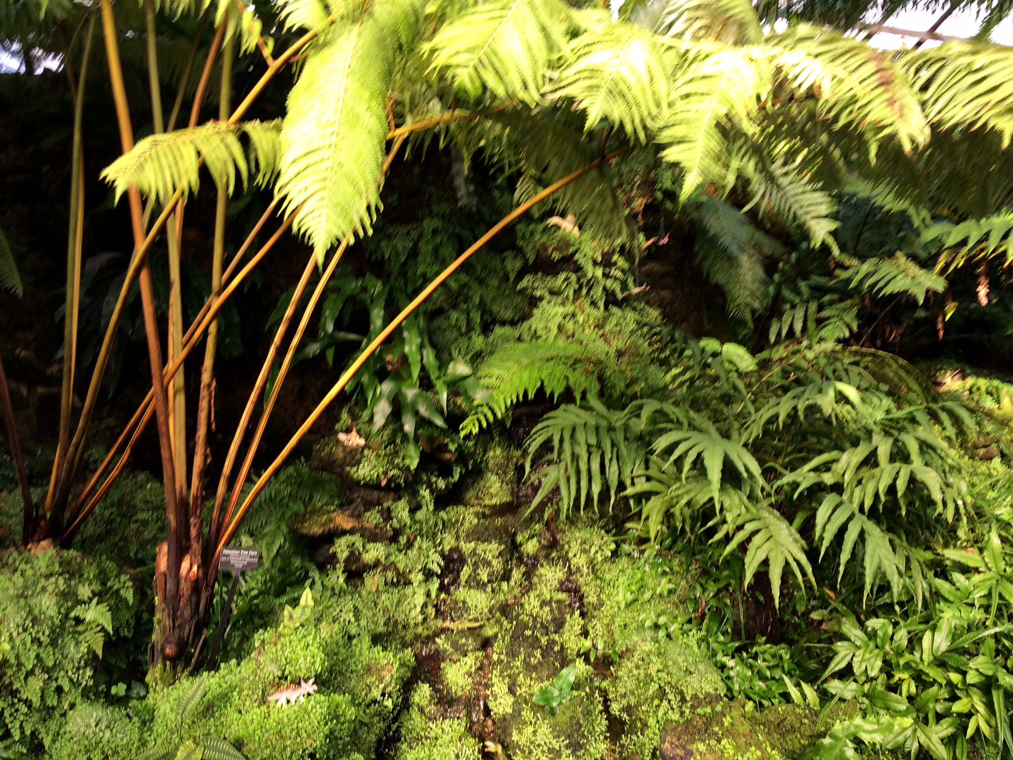 The plants are anything but an arbitrary visual device. A large portion of my youth to adulthood was spent next to a large forest area in the country. Friends and I built tree houses and defended territories, we explored fallen trees and mini swamps and hidden paths. Alone it was a great place for escape. Lately I’ve really needed a place like that to escape into. I often visit the lakefront of Chicago or walk around the Lincoln Park Conservatory. Naturally the plants found their way into my work, although my plants are mostly ficticeous. I prefer to create my jungly forest from imagination. I find my minds abstracted idea of foliage to be more satisfying than duplicating the look of real plants in the artificial plane of the canvas.
